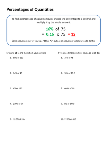 Percentages Of Quantities Calculator Methods Inc Reverse Percentage Change And Compound Interest Teaching Resources